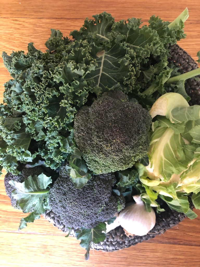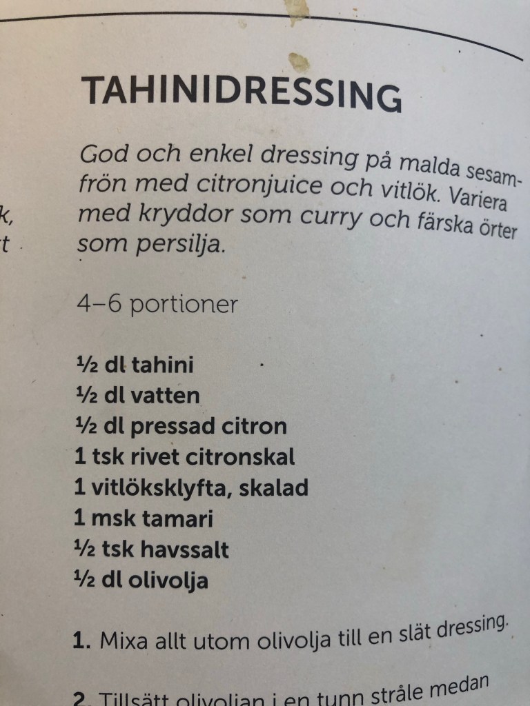 Lunchen blev grön och supergod. Ångad grönkål, stekt broccoli och blomkål och så en smaskig tahinisås till det. Ja och surkål! Vi älskar surkål och det finns ofta med till våra måltider.