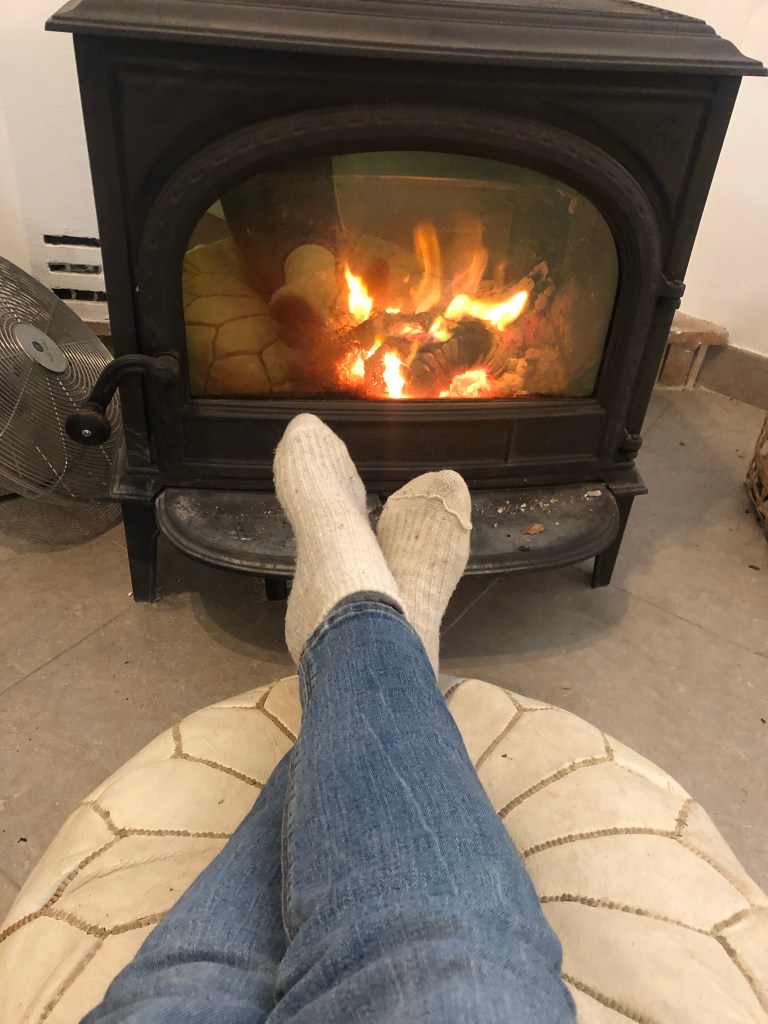 Nu en stund framför kaminen och ikväll blir det middag härhemma med bonussvärdotter och bonusbarnbarn. Om någon undrar varför vi har en fläkt bakom kaminen är det för att den varma luften kommer ut i rummet mycket bättre. Lifehack 🙂