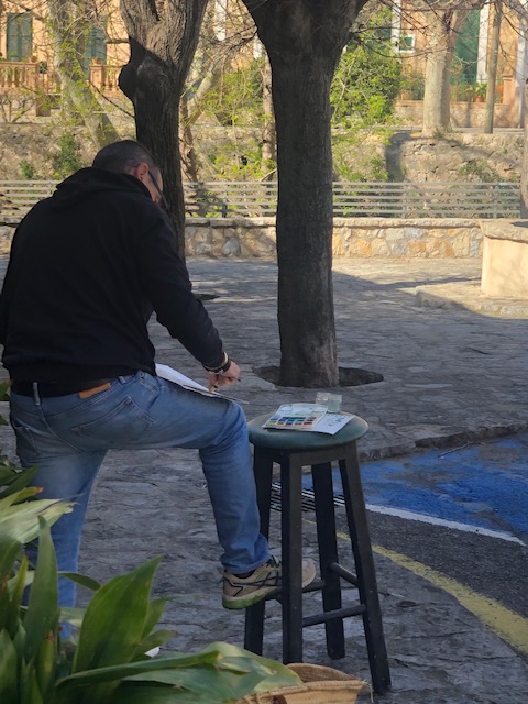 ( På bildern nedan ser ni att våren inspirerar många, idag stod ett par män och målade naturen i byn )